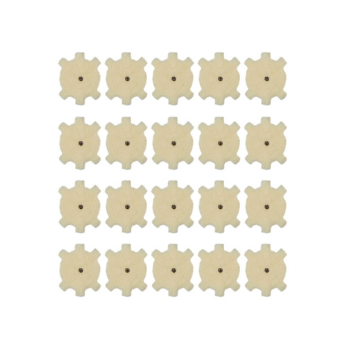 - Filcowe przecieraki, umożliwiające skuteczne czyszczenie rygli - zbierają zeskrobany osad, rozprowadzają środki czyszczące i smary. Wykonane z filcu wełnianego, kształt dopasowany do rygla AR-15. W zestawie 20 sztuk.